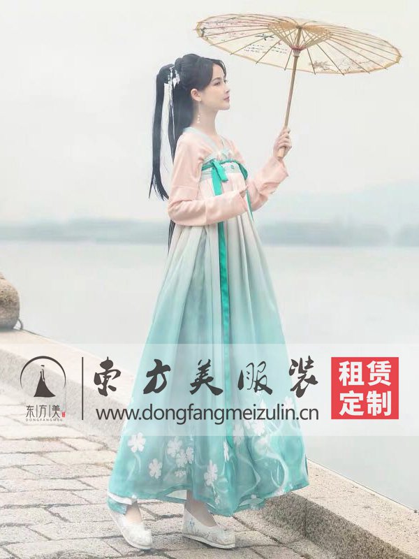 粉色绿色渐变唐朝女古装 影视古装租赁 租汉服 编号:女秦汉服装-591