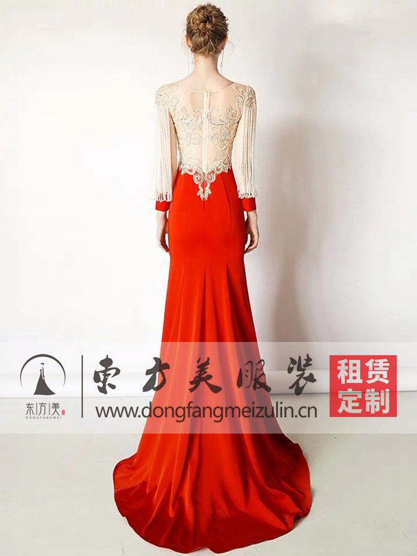 红色鱼尾高级女礼服 主持人 晚宴 成人礼 走秀礼服