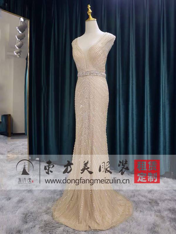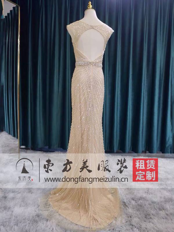 金色重手工鱼尾 年会主持人礼服 酒会 晚宴 走秀礼服租赁
