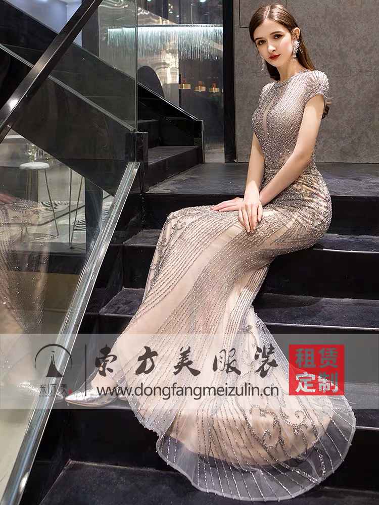 高级灰重手工鱼尾 年会主持人礼服 酒会 晚宴 走秀礼服租赁