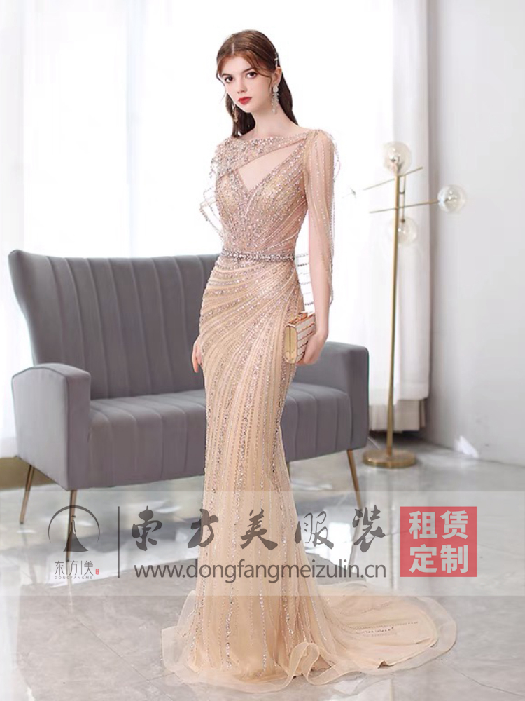 女士高端鱼尾重手工钉珠年会主持人礼服 酒会 晚宴 走秀礼服